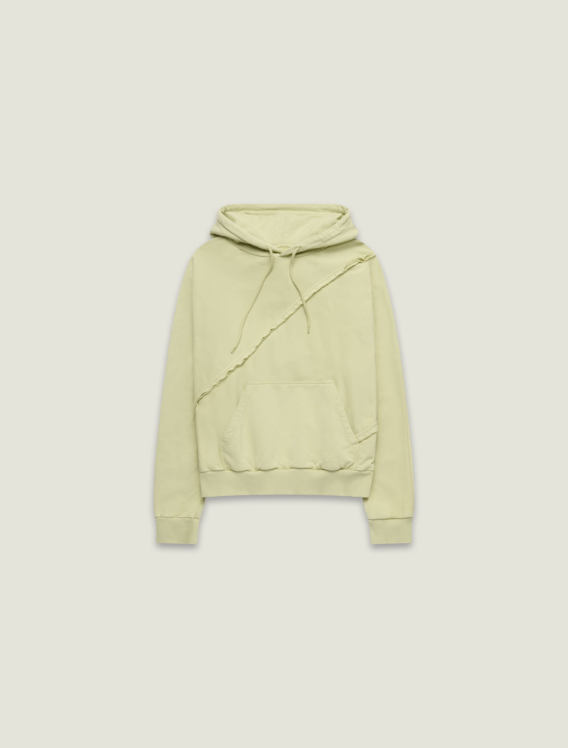 The Bias Hoodie, in sweatshirt looped cotton, comes with bias outside seams, kangaroo front pocket and drawstring hood. It features an ‘io’ embroidery detail. Unisex relaxed fit.