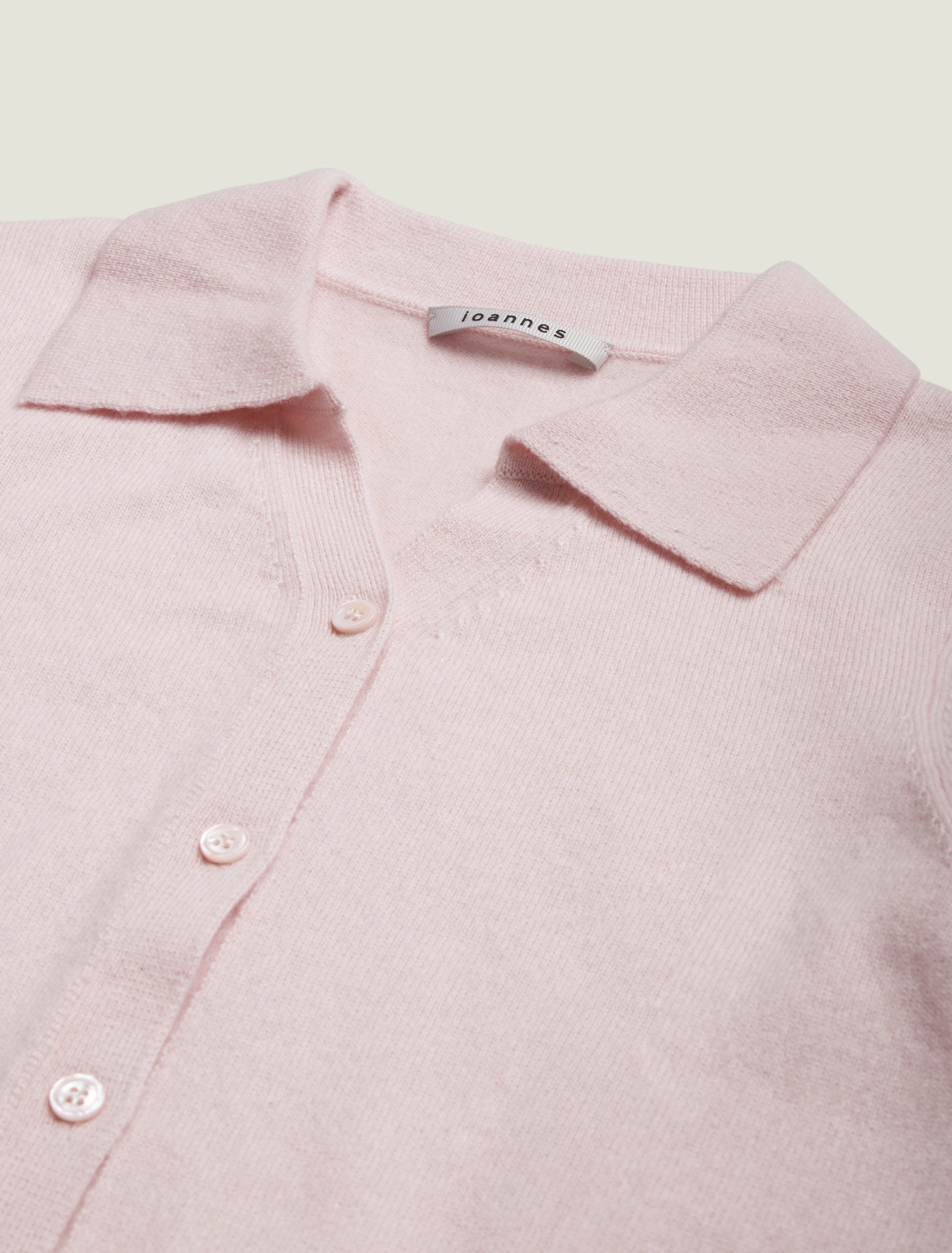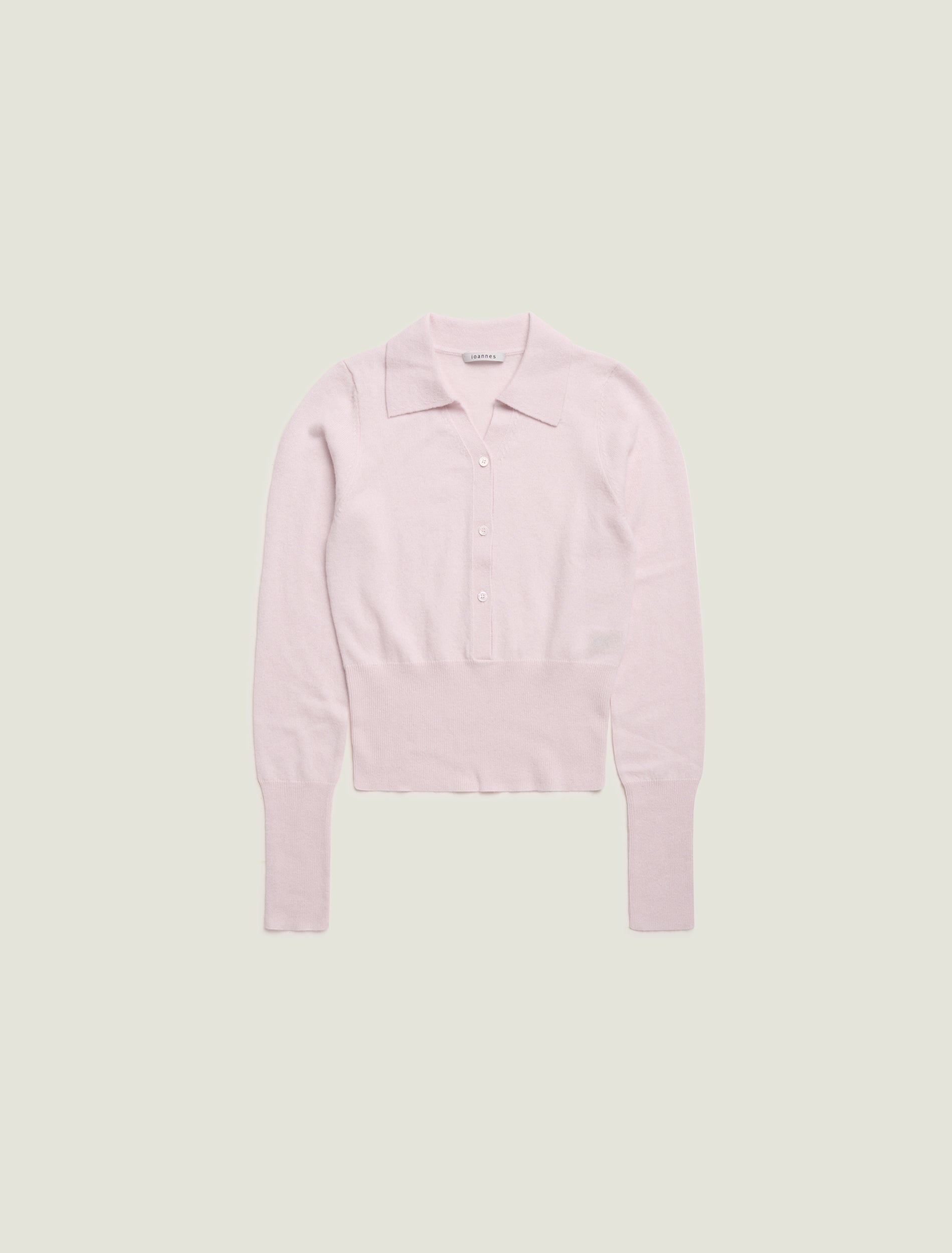 THE CASHMERE KNIT POLO COMES WITH ELONGATED RIBBED WAIST AND CUFFS. IT FEATURES HALF BUTTON CLOSURE AT FRONT AND 'IO' EMBROIDERY DETAIL ON THE BACK. REGULAR FIT.